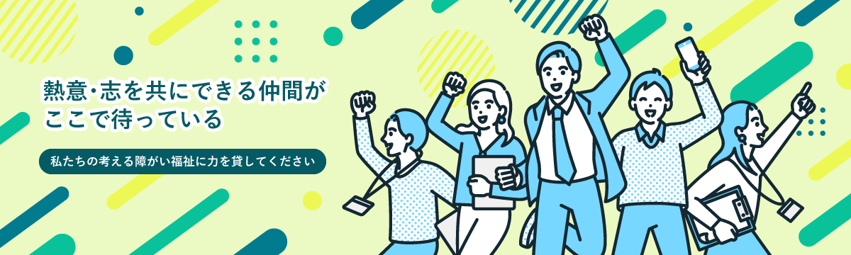 障がいのある人を地域で支えていくためには、たくさんの知恵と力を必要とします。チームの一員として、時にはチームのリーダーとして自分の力をはるかに超えるような関係者とともに仕事をする人は良い成果を生み出します。まとめるというより、協力する意識が高い人を求めます。